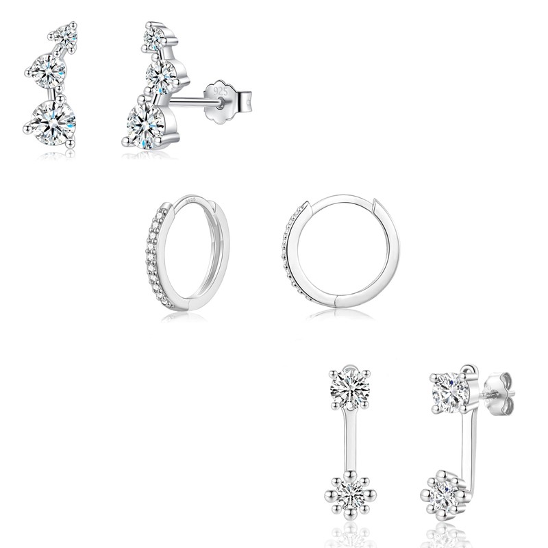 - 【Sterling Silver Stud & Earring Set】The earring set includes a pair of climbing earrings, 1 pair of small hoop earrings, and a pair of popular double zirconia earrings. These sterling silver stud earring sets are both versatile and elegant, and can be worn with any outfit, making them ideal for everyday wear.