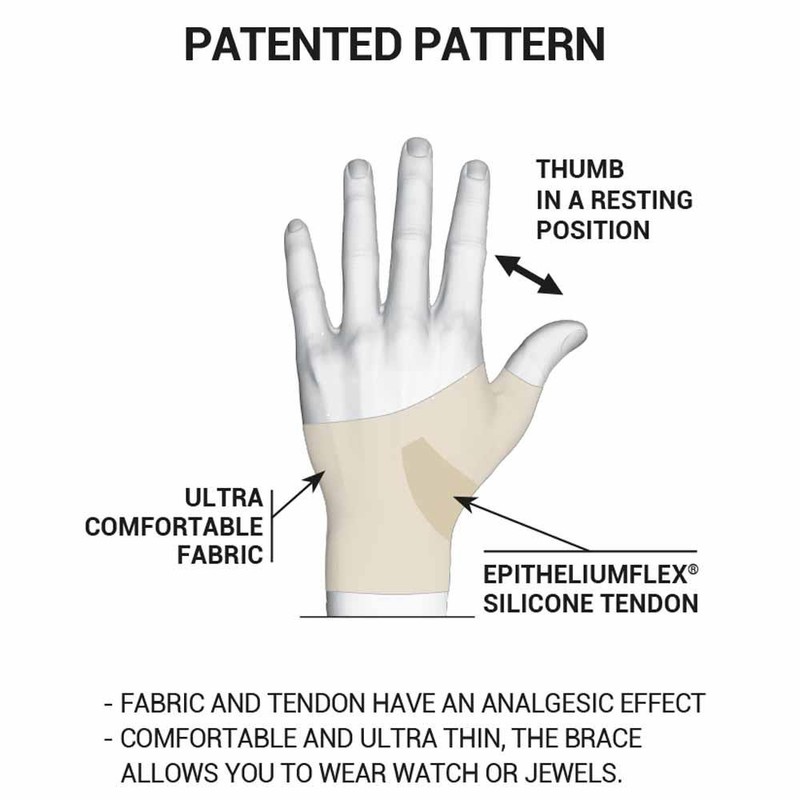 This flexible thumb brace is designed for use during the day, allowing support for the thumb but not restricting use of your hand. Pain in the thumb joint caused by arthrosis is relieved.