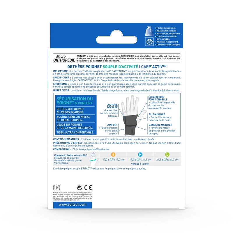 Epitact - Soft Day Carpal Tunnel Syndrome Orthosis - CARP'ACTIV - Right Hand, Large