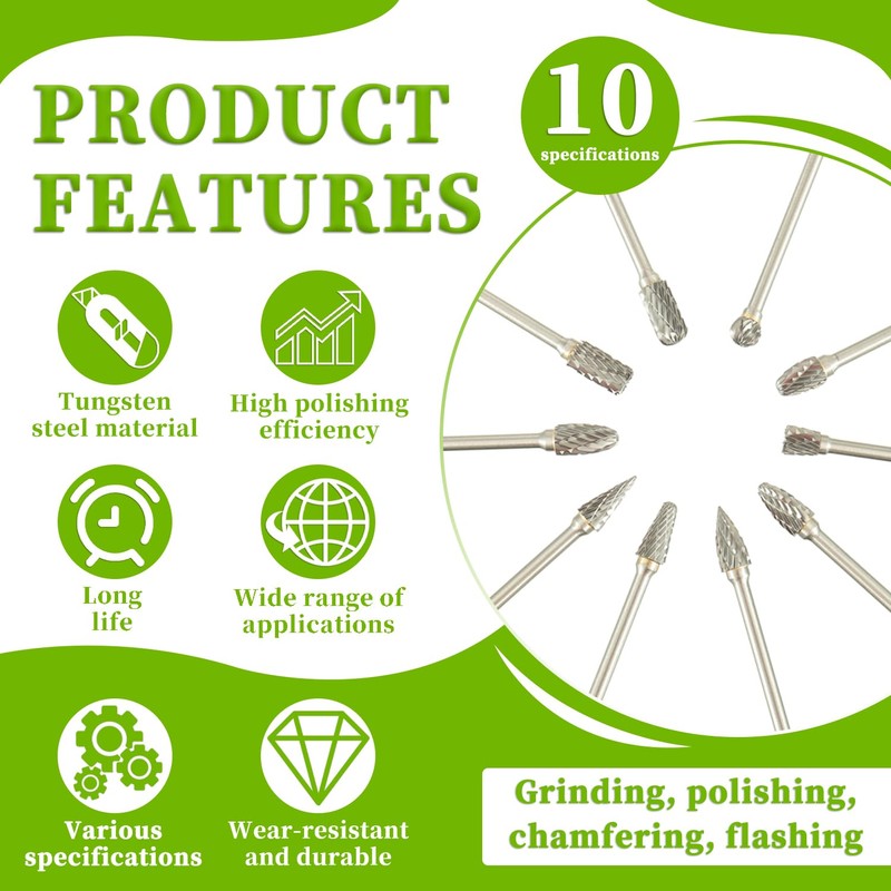 • 【Application】:The set includes everything necessary for carving, carving, polishing, and removing sharp edges, suitable for wood, stone carving, metal processing, and mold grinding machines. It is your ideal choice for DIY woodworking, carving, carving, polishing, chamfering, slotting, reaming, hollowing, and chamfering