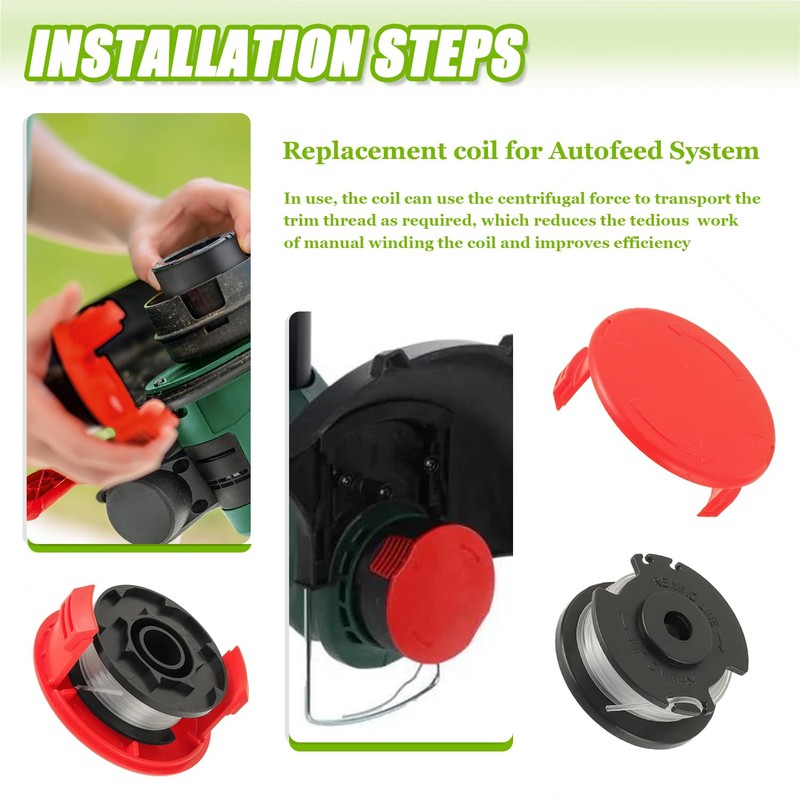 - Easy to install: grass trimmer replacement spool, it is easy to install and use and equipped with an automatic feed system, which can replace the spool automatically, which is safer and saves tedious work