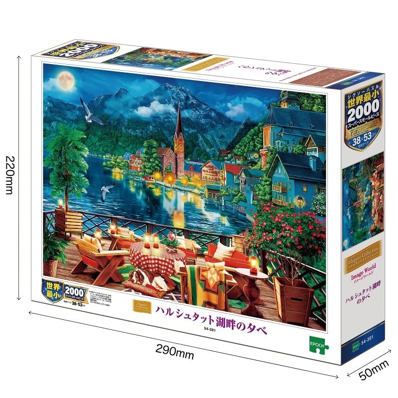 EPOCH 2000 Super Small Piece Jigsaw Puzzle Illustration/Art Elegant Collection Evening on Lake Hallstatt (15.0 x 20.9 inches (38 x 53 cm) 54-301 with Glue Spatula with Tickets