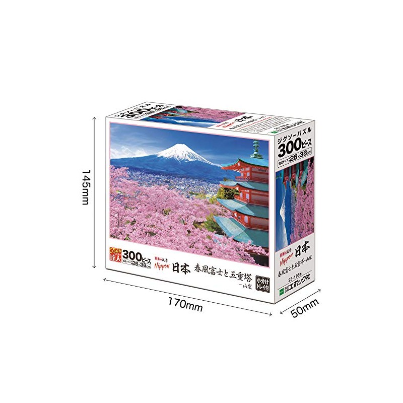 Epoch 25-195s 300-Piece Jigsaw Puzzle, Japanese Scenery, Spring Wind Fuji and 5-Story Pagoda - Yamanashi, 10.2 x 15.0 inches (26 x 38 cm), Includes Glue / Spatula / Point Ticket
