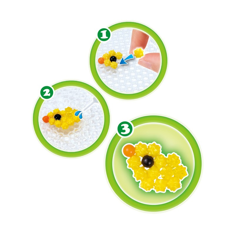 • Discover beautiful bags on different themes: farm animals, rings to create and the world of mermaids to create creations that you can play with... or give to your friends. The principle is simple: assemble the beads, spray water, let it dry and it's ready! The bag contains the essential for Aquabeads nursery: beads, your canvas, a spray and fixing brackets to develop your creativity. Suitable for ages 4 and above