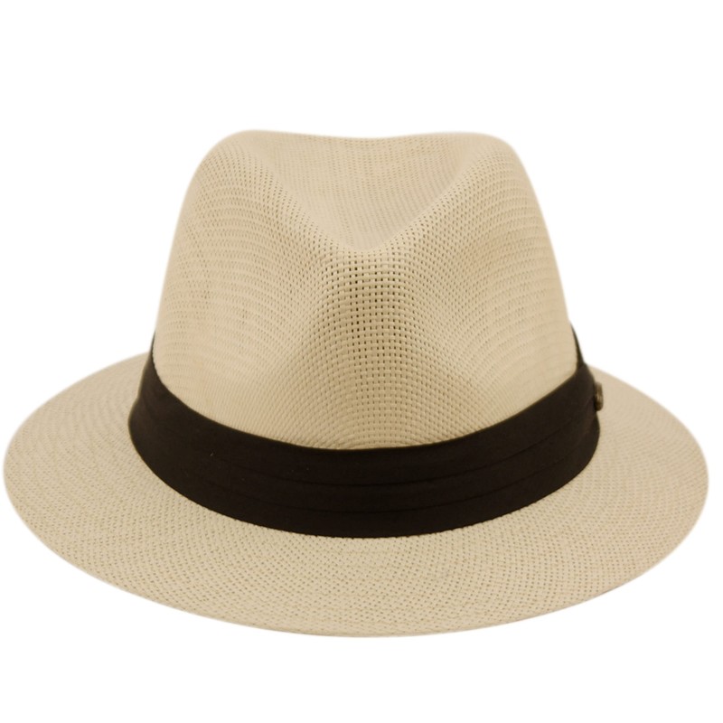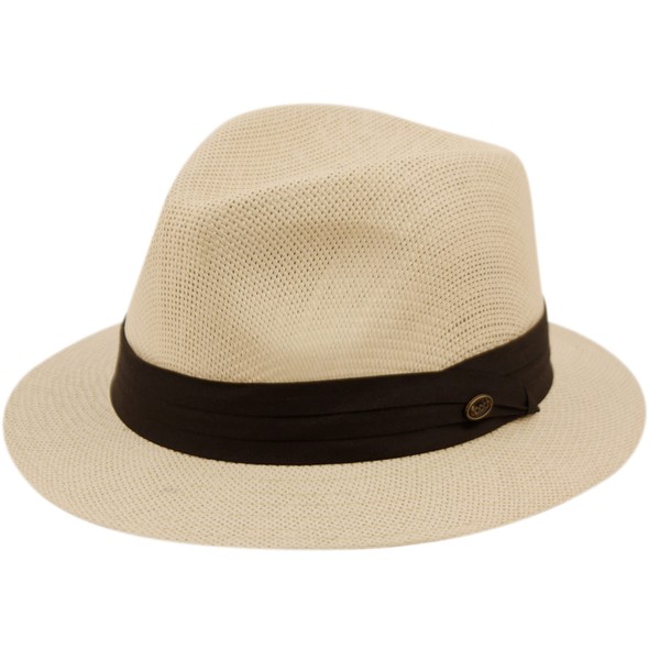 EPOCH Men's Summer Lightweight Short Panama Derby Fedora Flat Brim Hat (L/XL, Natural)