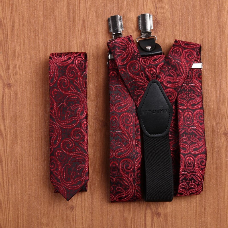 Epoint EFDB0018 Dark Red Black Patterns Suspenders Silk For Marriage Braces Skinny Tie Set