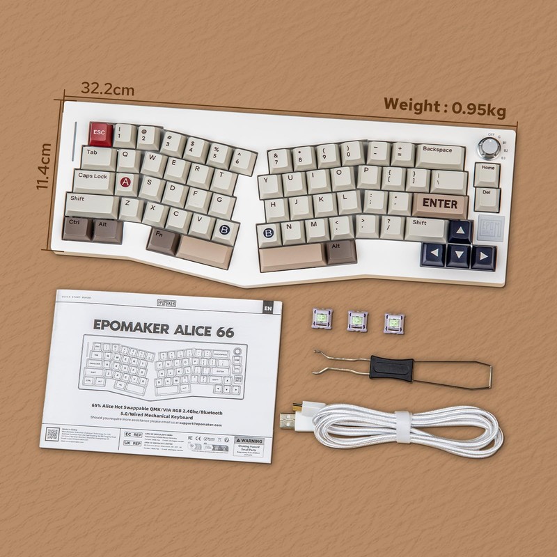 - 4000mAh Battery for Tri-Mode Connectivity: Adapts to your workflow effortlessly, the EPOMAKER Alice66 Keyboard guarantees stable connection without fuss. Keep your workspace versatile and clutter-free with the reliable 2.4Ghze wireless connection and the Bluetooth 5.0 that’s fast and Mac-compatible or enjoy the simplicity of plug-and-play with the durable USB-C cable in the box. Enjoy the long-lasting 4000mah battery that charges safely, and stay in action uninterrupted in game and life