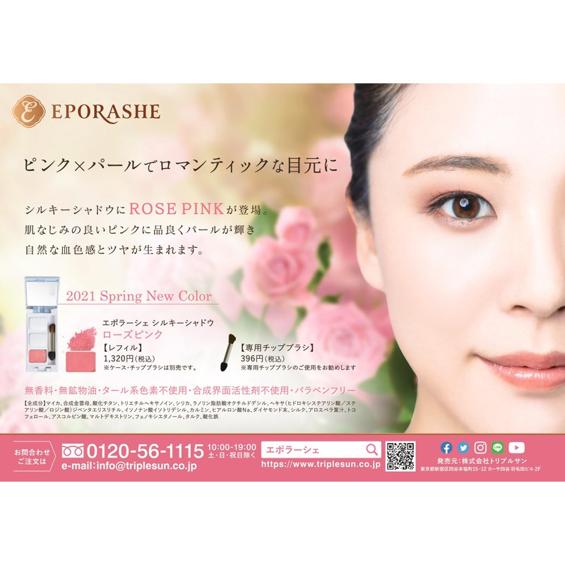 EPORASHE Silky Shadow (Rose Pink/Pearl Feeling★) Additive-Free Eye Shadow No Tar Pigmentation Difficult