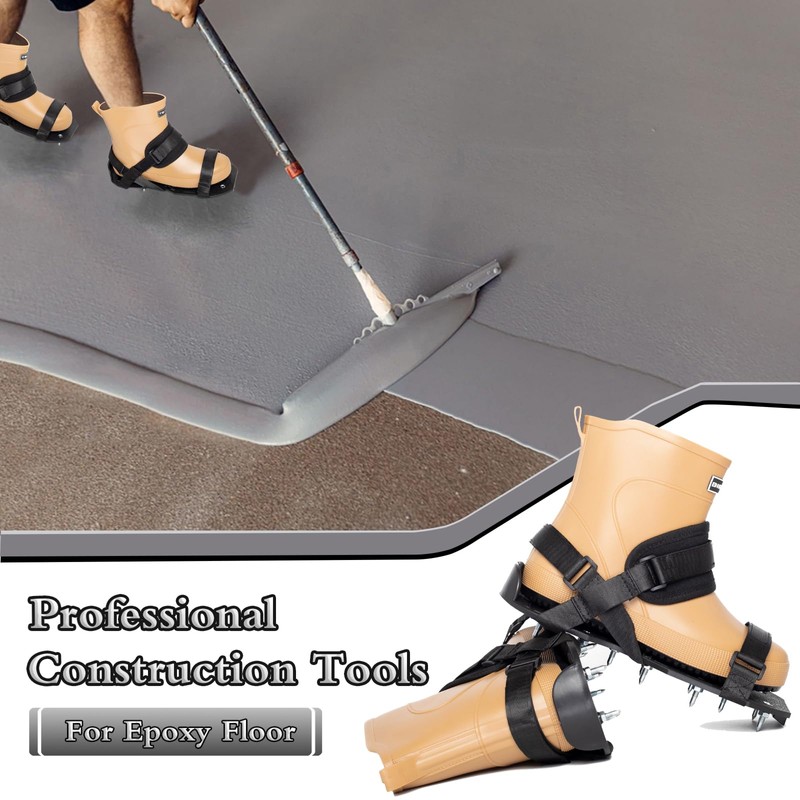- ● Optimized for Self-Leveling, Epoxy, and Concrete Coating Short spikes across the sole help eliminate air bubbles in floor coatings for a smooth, even finish. The X-frame support and Thick sponge added ankle cushioning reduce fatigue during extended use on epoxy resin, concrete overlay, or paint-based flooring.