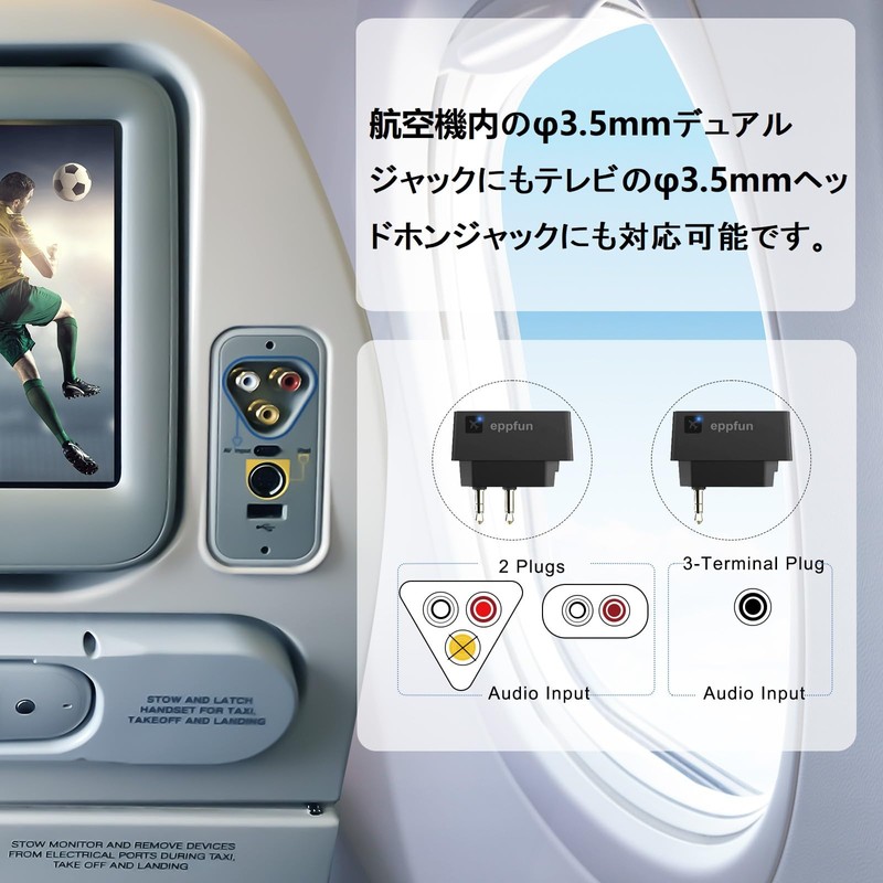 eppfun AK3046E Pro Bluetooth 5.2 APTX-Adaptive Transmitter for Airplane Wireless Flight Adapter APTX/APTX HD/APTX LL Low Latency Connect 2 Simultaneous Airplane Bluetooth Transmitter