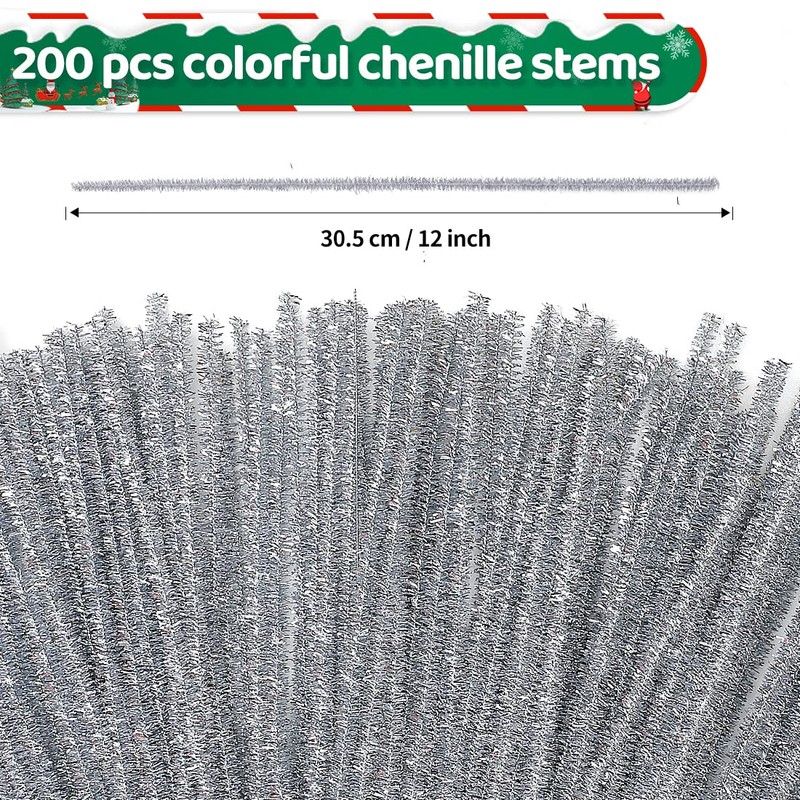 - You Will Get: 200 pieces of glitter silver chenille stems,exquisitely packaged. L×W×H:12*3*1 in. Available in a variety of colors, our pipe cleaners are sure to add a touch of whimsy to any project and create something that brings vitality to your life