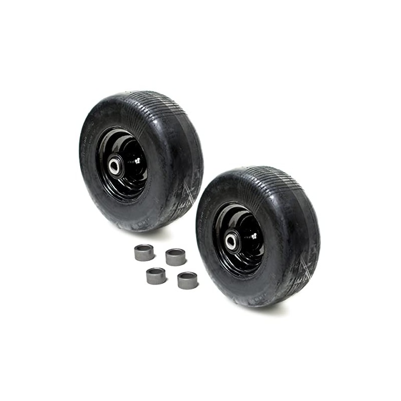 - Tire is complete with rim and bearings. This tire does not require air, this is a solid foam/rubber tire.