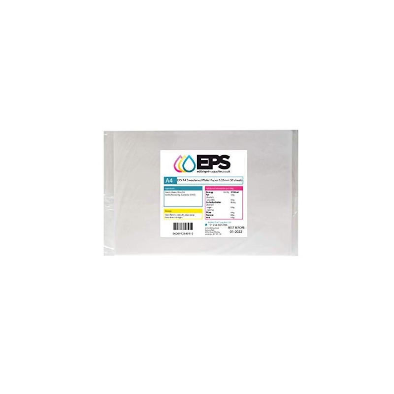 EPS Sweetened A4 Edible Wafer Paper/Rice Paper Pack for Edible Printing - 50 Wafer Paper Sheets per Pack