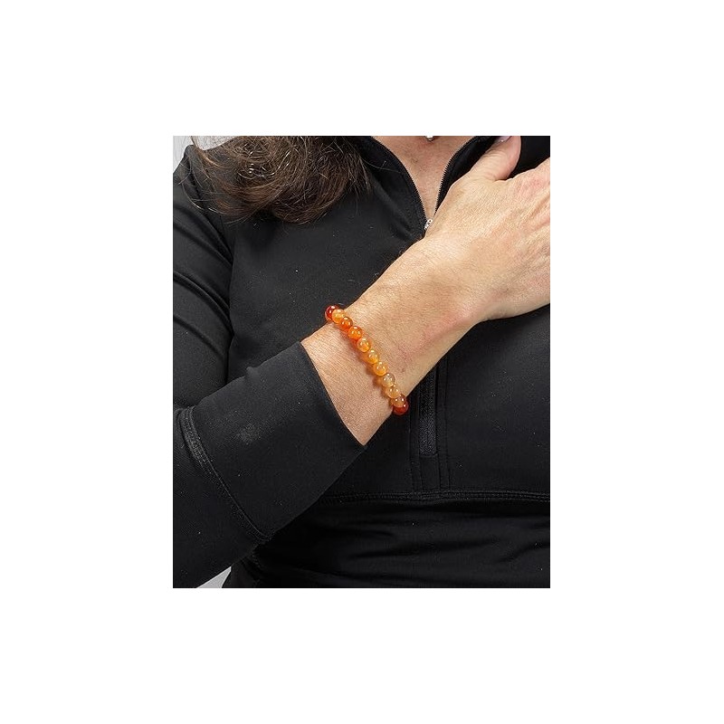 EPSAA Gemstone Beaded Bracelets For Women and Men Small, Medium, Large Sizes - 8mm Round Beads Carnelian, 7" Inches, Stone, Jasper