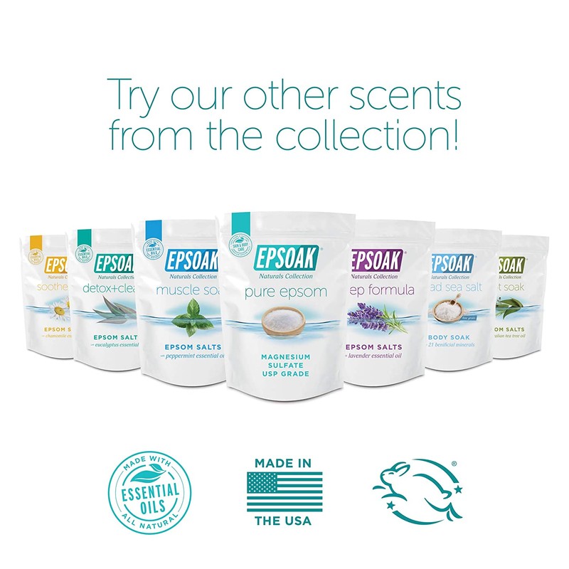 - MADE IN THE USA & CRUELTY FREE: PURE UNSCENTED Epsoak Epsom Salt (Magnesium Sulfate) is USP grade and GMO free (Genetically Modified Organisms). Leaping Bunny certified cruelty free.