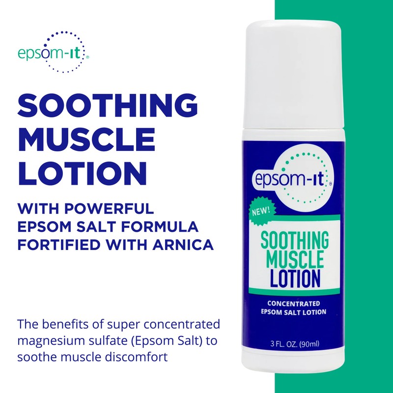 EPSOM-IT Epsom-It Soothing Muscle Lotion - Roll On Epsom Salt Lotion with Arnica for Muscle Aches and Stiffness, Leg Cramps, Knees and Tired, Achy Feet, Topical Magnesium Cream, 3oz.