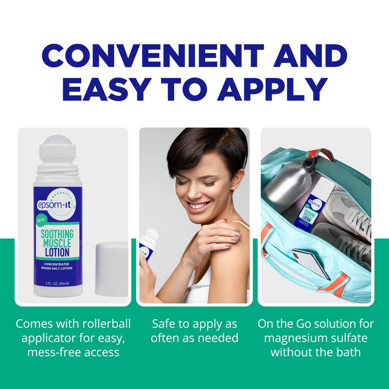 - Magnesium Roll On - The convenient rollerball makes the Epsom salt lotion super easy to apply! Toss it into your gym bag or carry-on luggage during travel and roll it onto affected areas as needed. Apply before bed for a restful night's sleep.