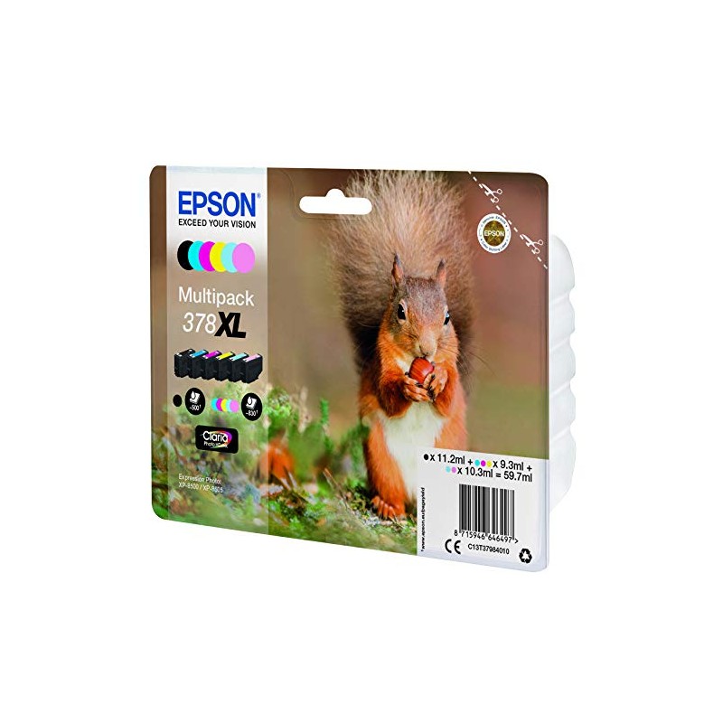 - Epson Multipack 6-Colors 378XL Claria Photo HD Ink Cartridge (Original Pigment-based Ink, Black, Cyan, Light Magenta, Yellow, Epson, Expression Photo XP-8500, XP-8505, Pack of 6 (S))