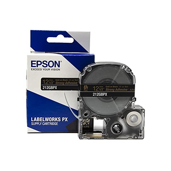 Epson LABELWORKS 212GBPX PET (Polyester) Tape Cartridge - Gold on Black Label Maker Tape - 1/2" (12MM) Wide, 30'
