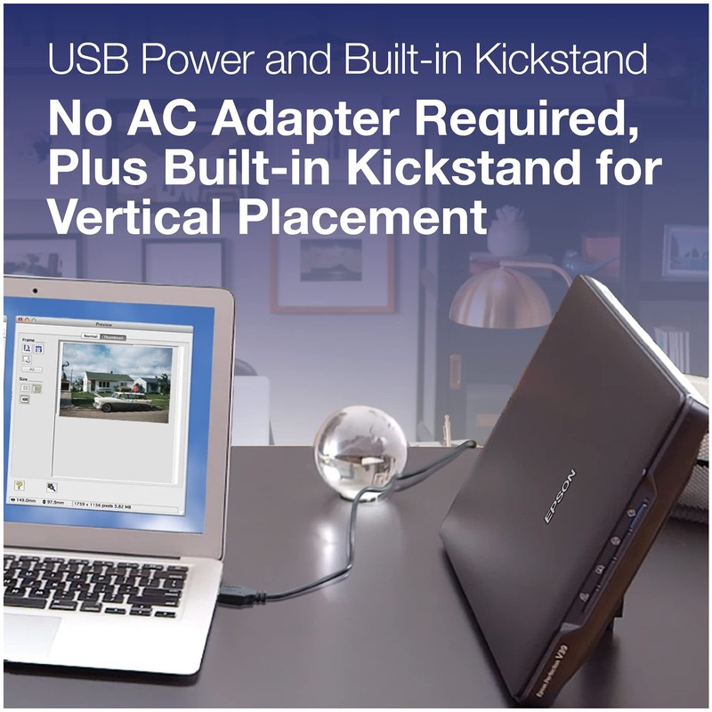 • Convenient: Easy to use buttons for scan jobs, plus a space saving built in kickstand for vertical placement