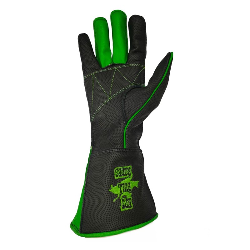 EPT Bull Ropes Bull Riding Glove Outer Seam Adult & Youth Right or Left Hand Black & Green Textured Leather Sizes: 5.0-10.5 (8.5 Left Hand)