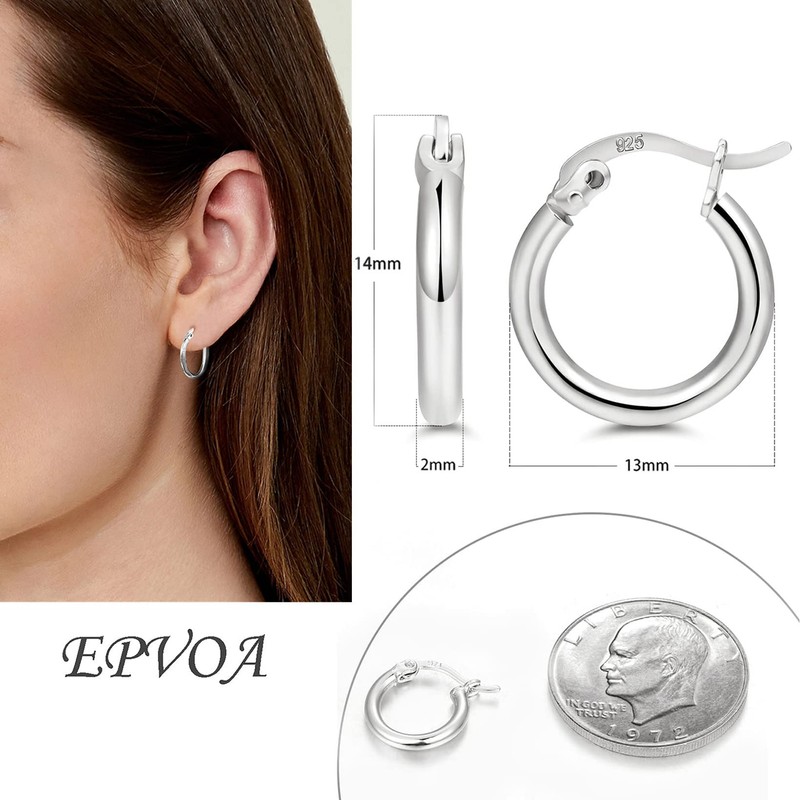 EPVOA Silver Hoop Earrings for Women, 925 Sterling Sliver Hoop Earrings for Girls, Hypoallergenic Hoop Earrings Set, Silver Hoops Earrings for Men, Sizes 13/15/20mm