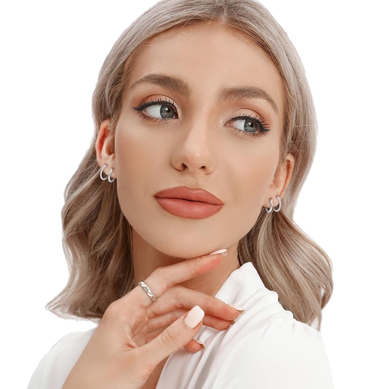 - 【High Quality Material】: This Sliver Hoops Earrins Set is made of 925 Sterling Silver + White Gold Plated. The Whole Earrings are High-polished, made with good design & flexible clasp. Its unfading and safe materials give you a feeling of lasting freshness.