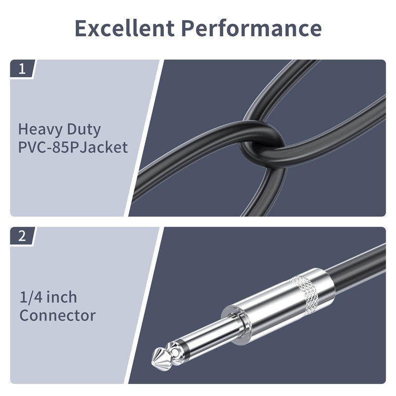 You can connect an electric guitar, bass, PA speakers or keyboard to an amplifier or any audio equipment that supports mono or stereo signals for the best audio. Work great for stage monitors, mains, DJ speakers, etc.