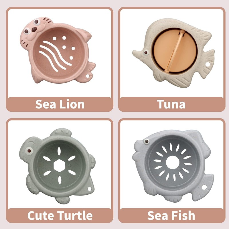 - MULTIFUNCTIONAL BATH TOY - Stacking Cups come in 4 different sizes and colors for each cup. These mugs also have different cute cutout patterns printed on the bottom. You can also use these boats to float, scoop and filter water. In addition to cups and boats that can be used as bath toys, kids can use these to stack up and go to the beach to build a castle. It is a must-have bath baby toy for your baby's growth.