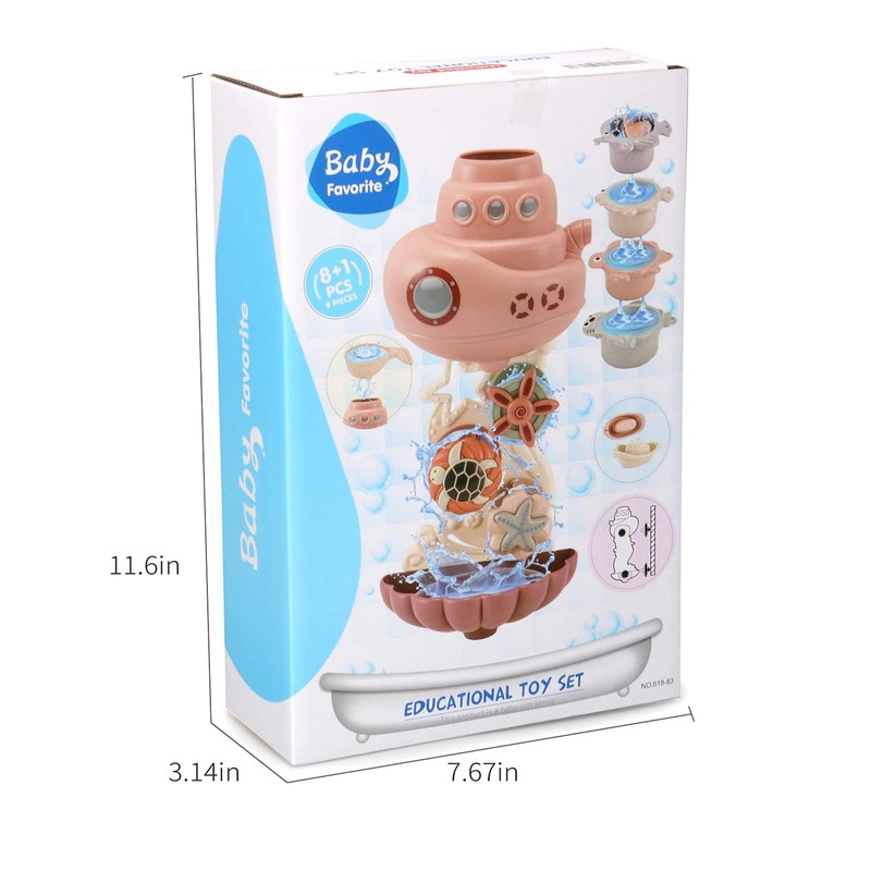- Wonderful Waterfall Toy - This bath toy set contains 1 Pc waterfall station toy, 2 Pcs Whales spoon, 4 Pcs stacking bath cups and 2 bath boats. Just use the spoon toy to fill water into the top of the waterfall toy, then the turtle, starfish and propeller will rotate. And use the cups to pour out water, the water will come flowing out of the bottom. You also can use these boat to stacking, rinse and build a little boat train. let kids have more fun in bath!