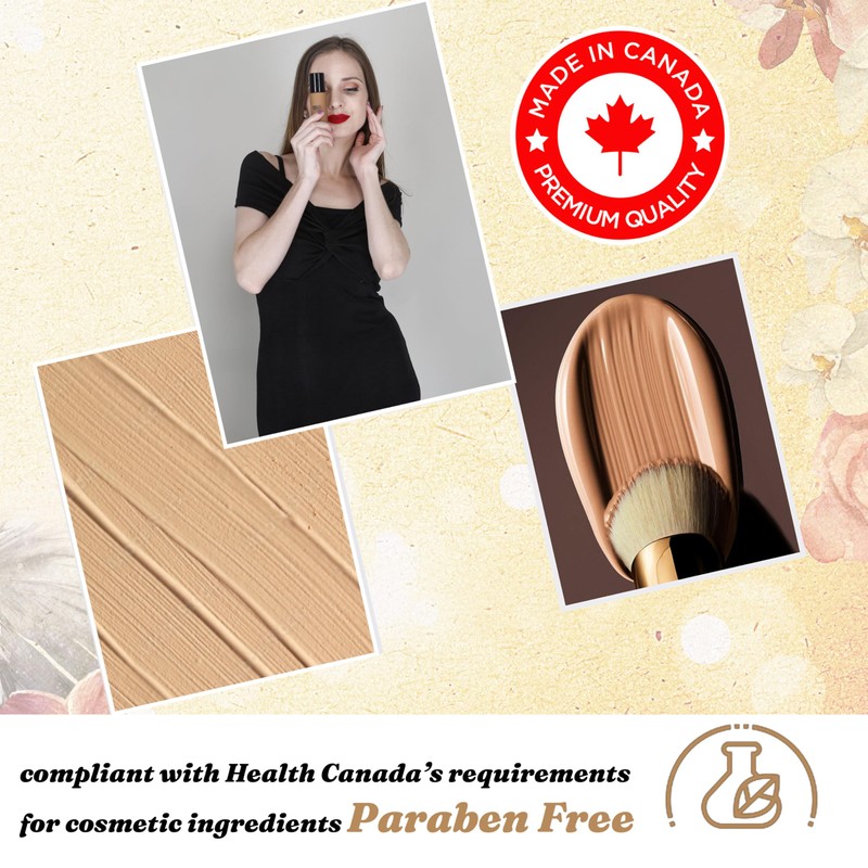 Proudly made in Canada, this foundation is hypoallergenic, non-comedogenic, and meets EU standards for cosmetic safety. It's also cruelty-free and formulated without parabens, aligning with Health Canada’s strict guidelines for cosmetic ingredients.
