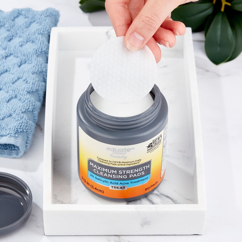 - Equate Beauty Maximum Strength Cleansing Pads: 2% salicylic acid acne treatment.