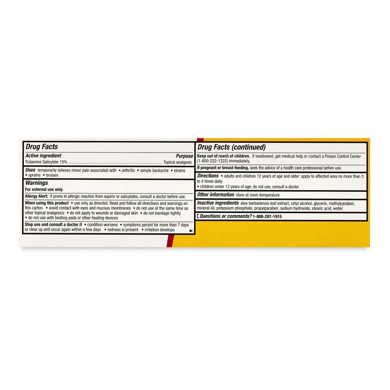 - Key Ingredient: Formulated with 10% Trolamine Salicylate, a topical analgesic that helps reduce inflammation.