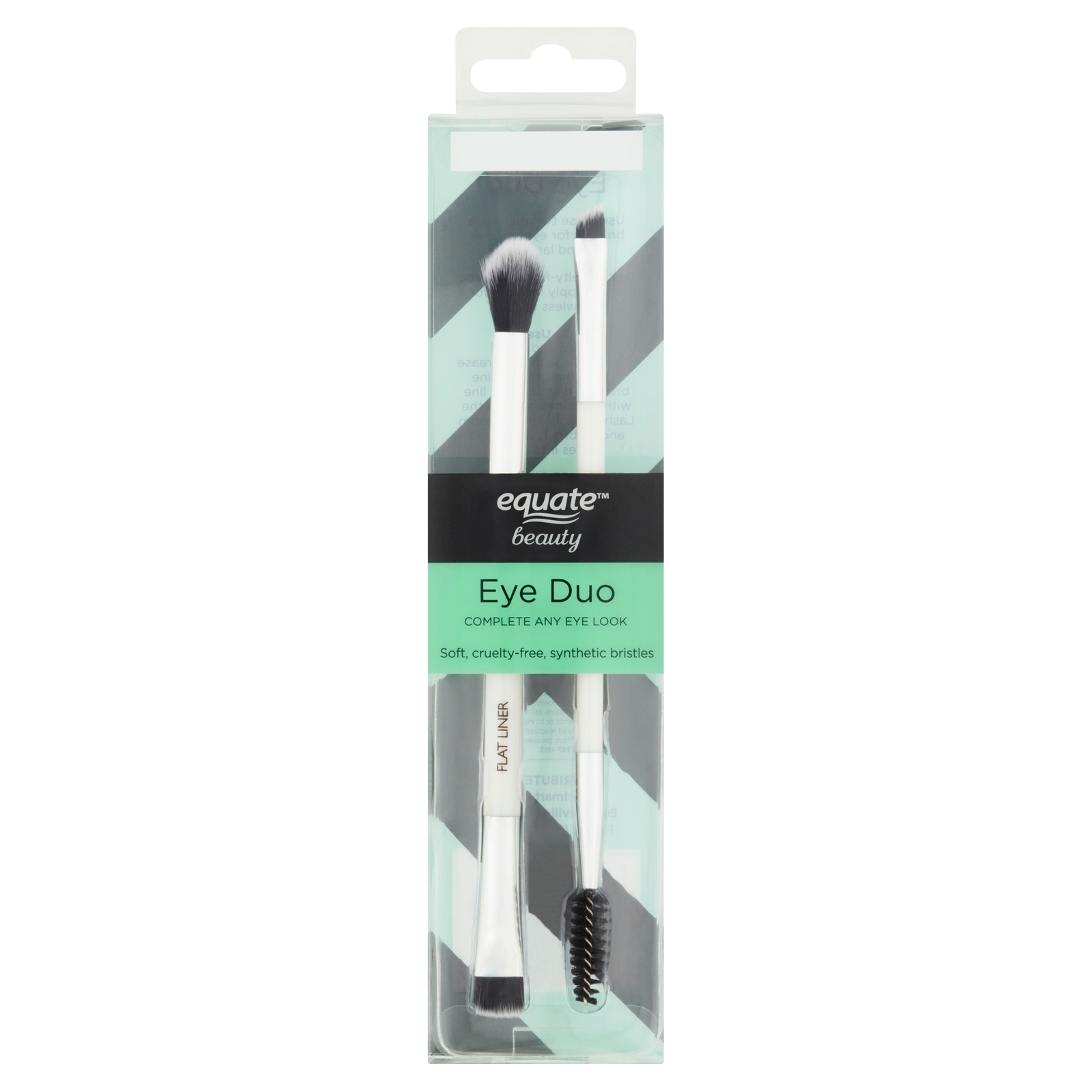 Achieve impeccable eye makeup with the high-quality, multi-use brushes in our Equate Beauty Eye Duo. Each package includes two dual-sided brushes made with soft, cruelty-free, synthetic bristles for your eyes, eyebrows, and eyelashes. The crease/line tool has a round brush on one end and a square brush on the other, making it ideal for sweeping and blending. The complementary lash/brow tool features an angled brush and a mascara wand for grooming and filling brows or combing lashes into place. You'll have exactly the tools you need to attain the look of exquisite eyes with our Equate Beauty Eye Duo! Try all of our Equate Brushes and Kits for a flawlessly finished face. Equate Beauty understands that beauty isn't just skin deep. With a large selection of the latest beauty products Equate Beauty helps you be your best you.