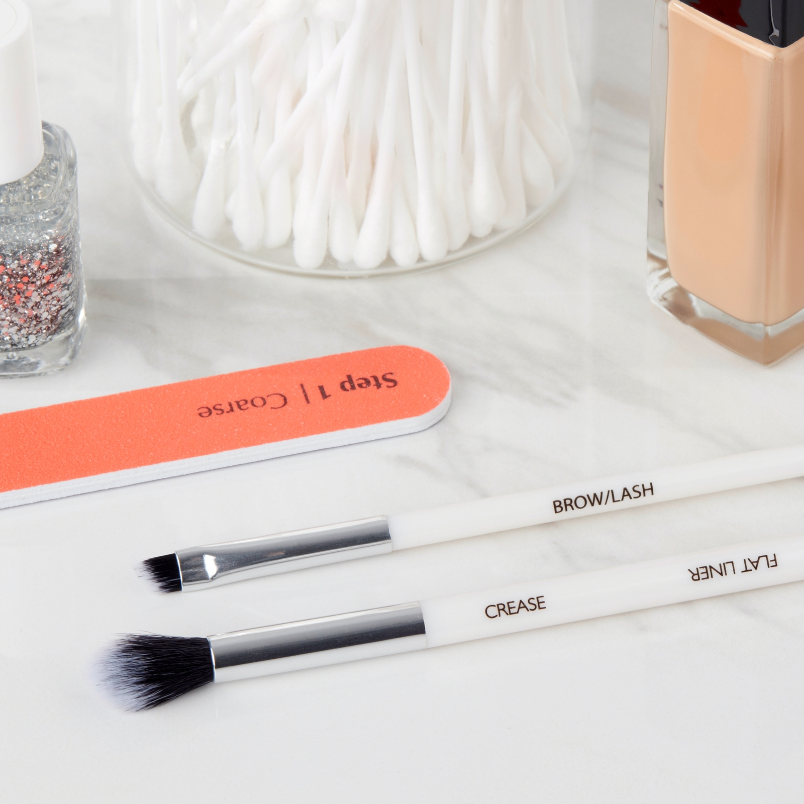 Instructions: Use these two multi-use brushes for eyes, brows, and lashes. **To Use: **Sweep and blend eyeshadow with the crease end of the crease/line brush and smudge or line with the line end. Use the lash/brow brush to groom and fill brows and comb lashes into place. **For Care: **Use gentle shampoo and lukewarm water. Reshape and lay flat to dry completely for best results.