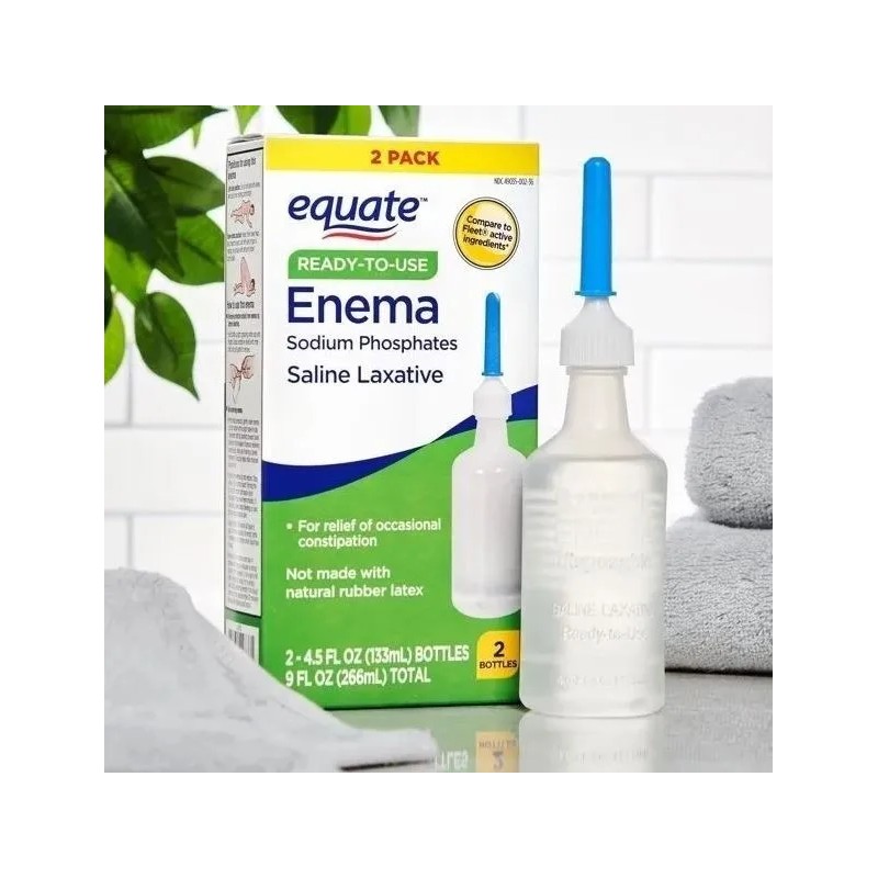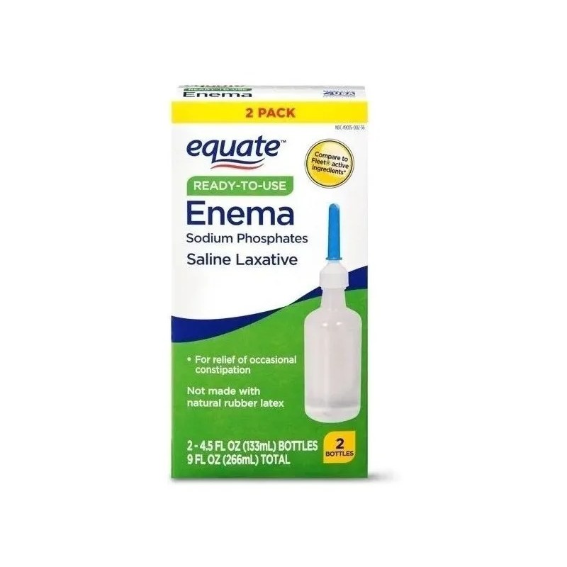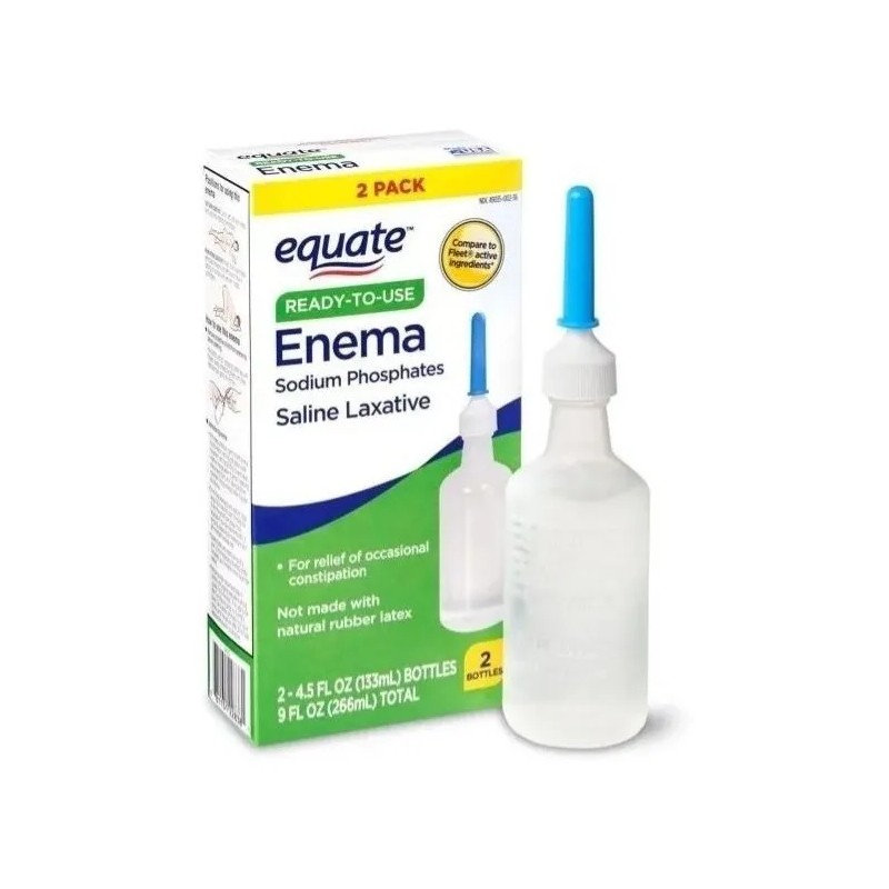 ° El paquete contiene (2) botellas de 4.5 onzas líquidas de Equate Ready-To-Use Enema.