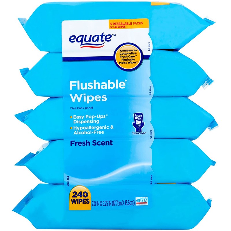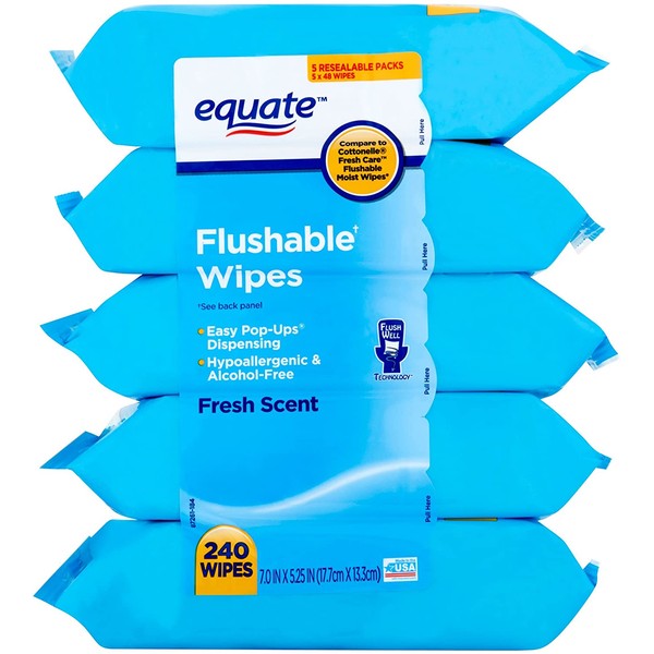 Equate Fresh Scent Flushable Wipes, 7" X 5.25", Count of 240, 5 Pack
