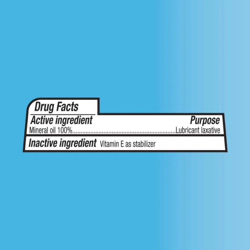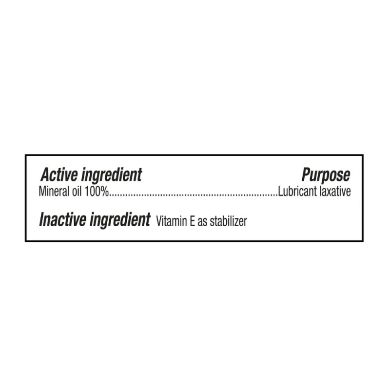 • Active ingredient: Mineral Oil 100% - Lubricant Laxative
