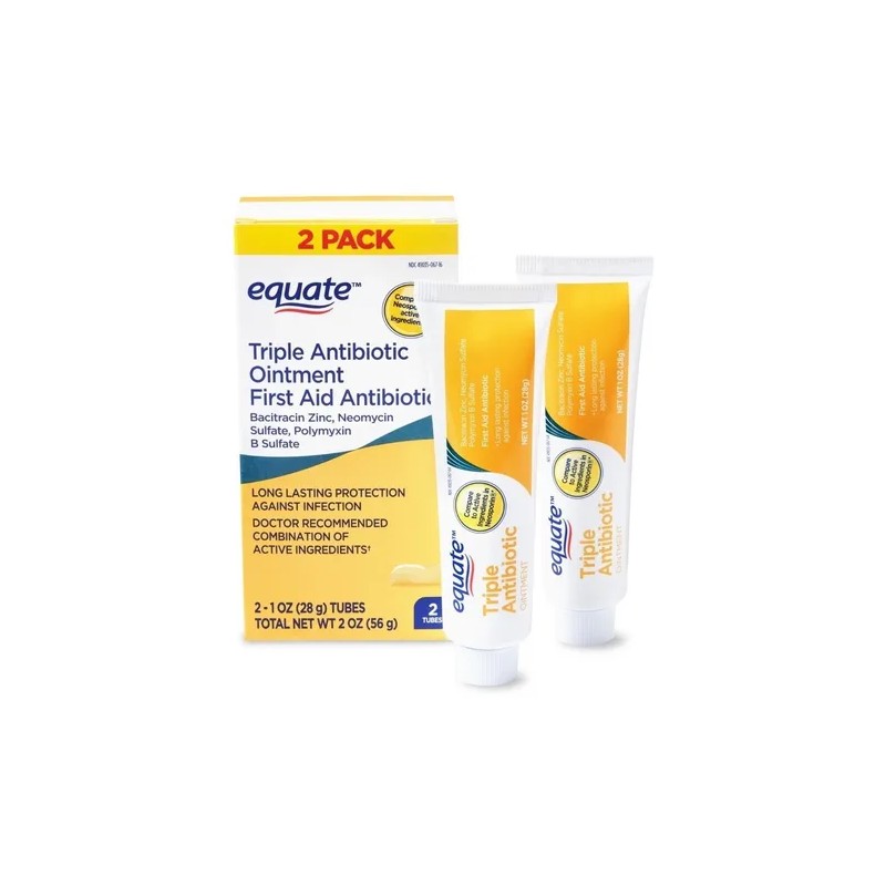 Proteja las quemaduras y cortes con la pomada triple aintibiótica Equate First Aid. Este producto para el cuidado de la salud viene con dos tubos en un tamaño de 2 oz. El cómodo tamaño permite llevarlo contigo mientras viajas.