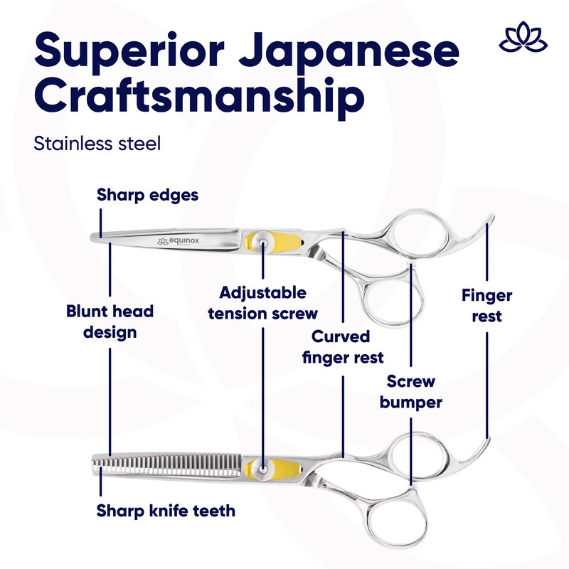 - Convenience - At a weight of only 3.5 ounces each, anybody can handle these Equinox Hair Cutting/Thinning Scissors with ease! Equipped with a golden painted adjustment screw, you can effortlessly fine-tune these scissors to your desire of tension.