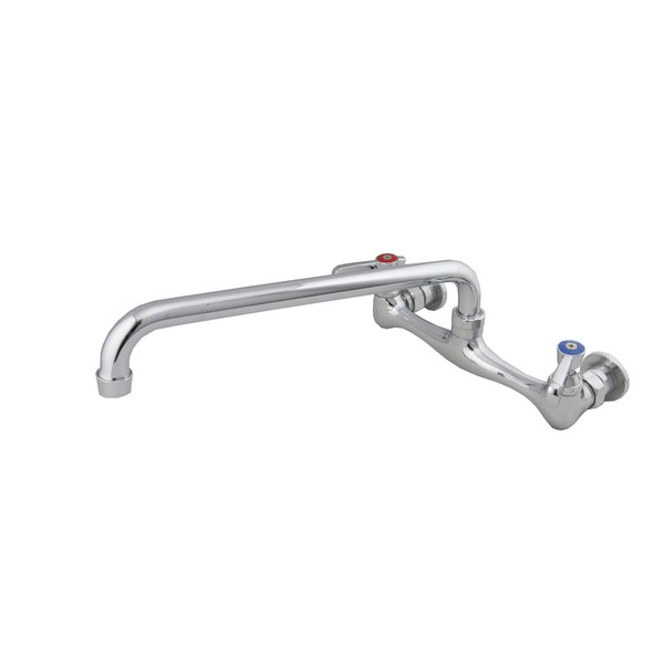 This aa-faucet commercial grade wall mount lead free faucet provides a practical solution to make your daily cleaning much easier. While looking sleek in a polished chrome outfit, it features 2 color coded handles and a double O-ring swivel spout, which can direct hot/cold water to anywhere you desire. The heavy duty brass constructed body withstands both the heat and cold from the hot/cold water throughout the test of time. This faucet is well designed and built to help you on your daily work. - Heavy duty brass construction for durability - polished chrome finish gives out a modern sleek look - reinforced double O-Ring valves with hot and cold mark on stem - color coded red and blue handles - heavy duty double O-ring swivel spout - 1/2" NPT female inlets - NSF approved.