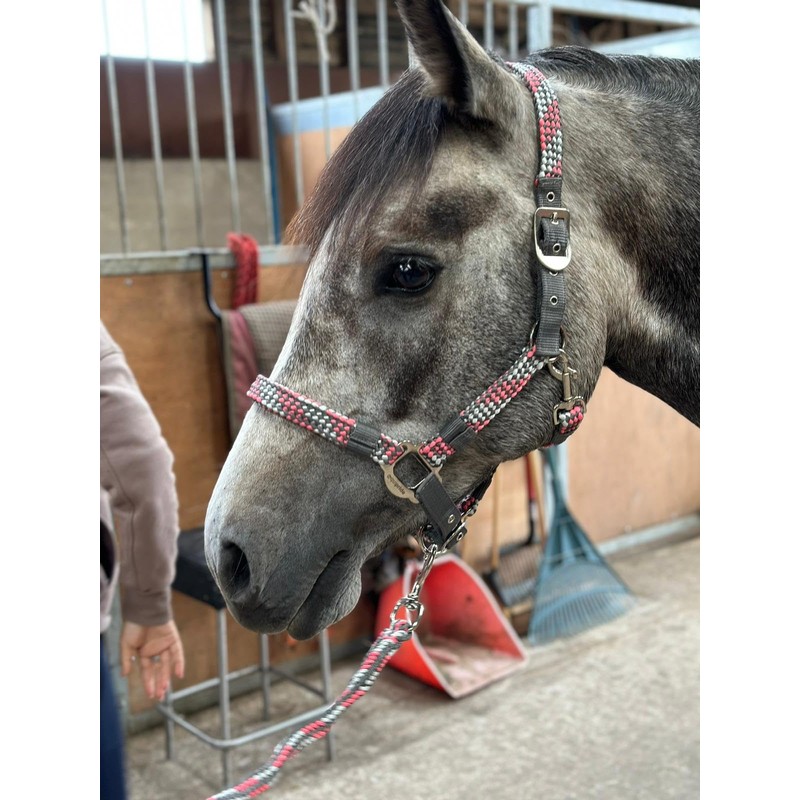 Equipride Braided Headcollar Lead Rope Set Size Full-Shetland Pink/Grey (Full)