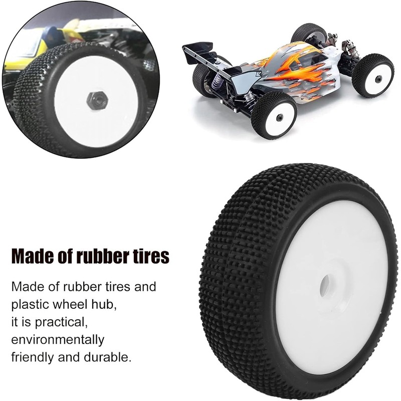 • Premium rubber: RC car tyres made of rubber tyres and plastic wheel hub, it is practical, with strong cushion and high wear, 1/8 RC off road racing car rubber tyres can support hard roads and ensure stable and flexible driving
