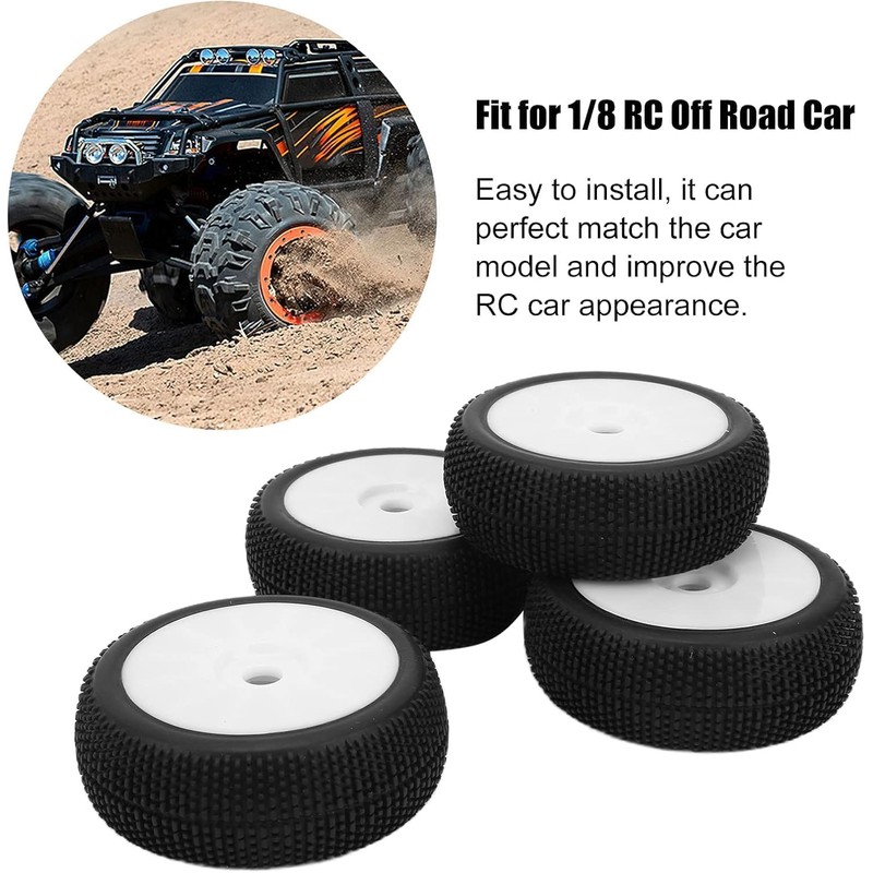 equlup 4 Pcs RC Tires and Rims Front and Rear with 17mm Hex Rims and Rubber Tires for 1/8 RC Off Road Racing Car Upgrade Parts (White)