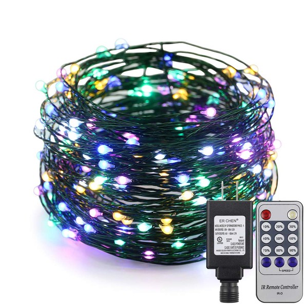 ER CHEN 66ft Led String Lights, 200 Led Starry Lights on 20M Green Copper Wire String Lights Power Adapter + Remote Control(Multicolor)