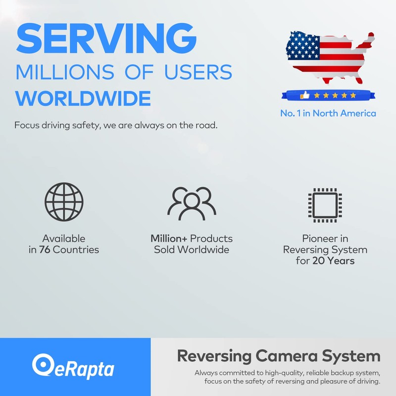 • What You Get: 1x Backup Camera, 2x Metal Brackets, 1x AV Cable ,1x Power Cable ,1x Installation Manual, Two Year Warranty and Lifetime Technical Support. eRapta support department will always be there for any consultation.