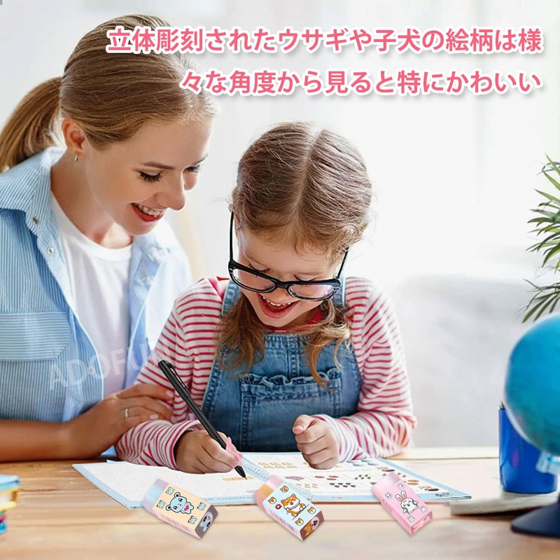 - Cute Eraser: Cute and fun to use. In order to make kids interested, this cute eraser for kids is made of safe and odorless rubber material, the eraser is cute shape design is very popular with girls. The rabbit and dog motif is not only on the surface, but also on all sides of the cut-out side has cute rabbits, dogs, and cute erasers that will make you fall in love at first sight
