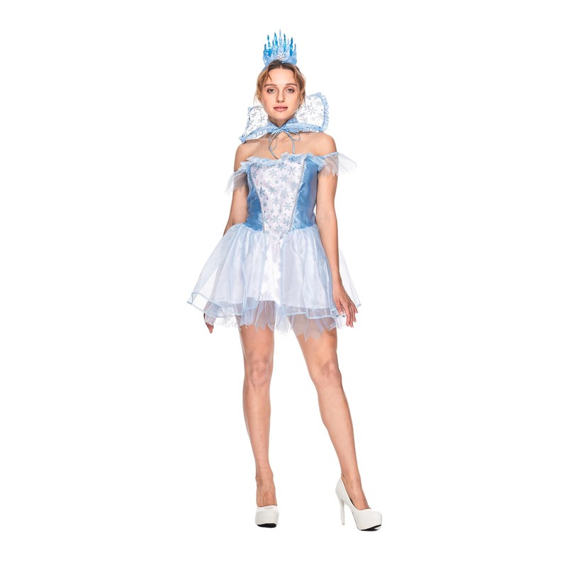 EraSpooky Women’s Snow Queen Costume - Enchanting Snow Princess Dress with Crown and Cape