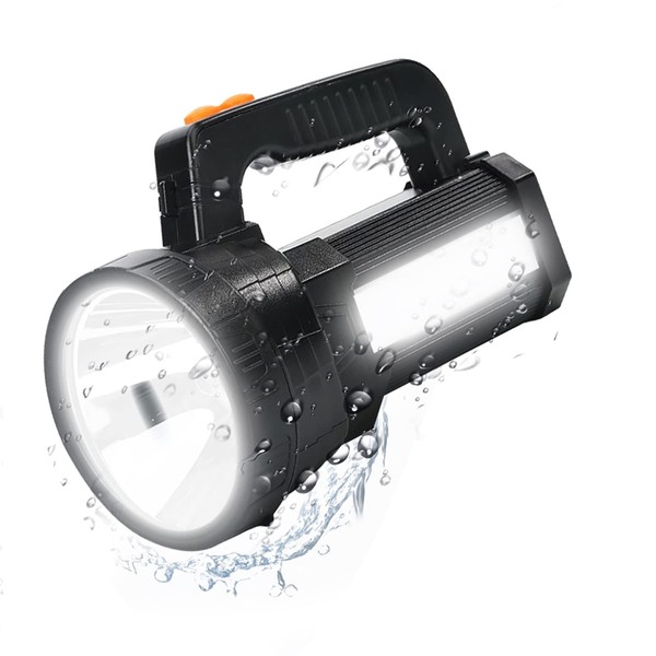 ERAY - Linterna grande de mano recargable, 10000 lúmenes, potente foco LED de búsqueda, linterna estroboscópica, combinación de 6 modos de iluminación para acampar al aire última intervensión,