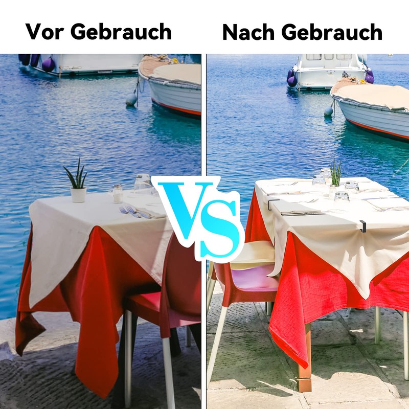- Special design: the tablecloth clips can be automatically adjusted to the thickness of the table, with rounded edges that fit perfectly with the dining table at 90°. Does not affect the decoration of the tablecloth.